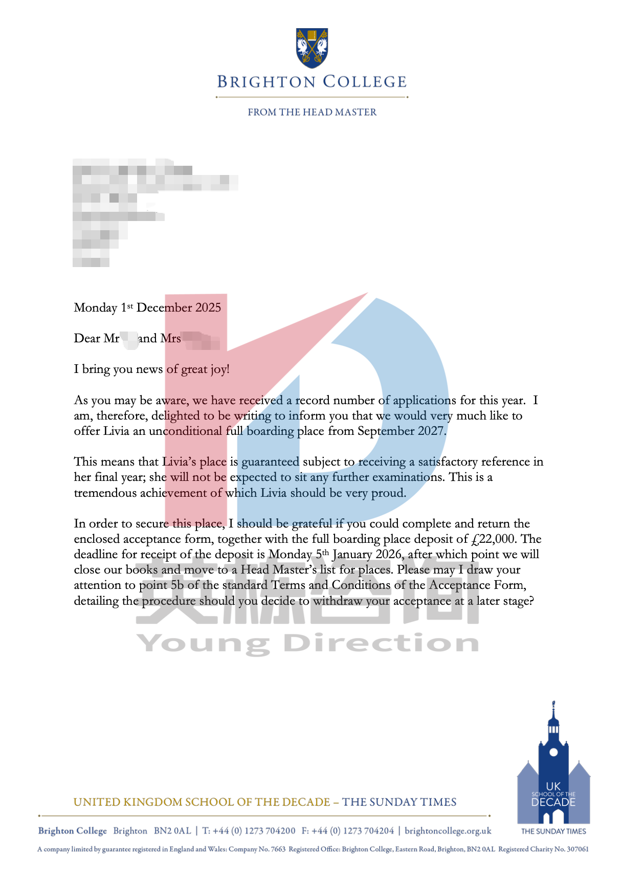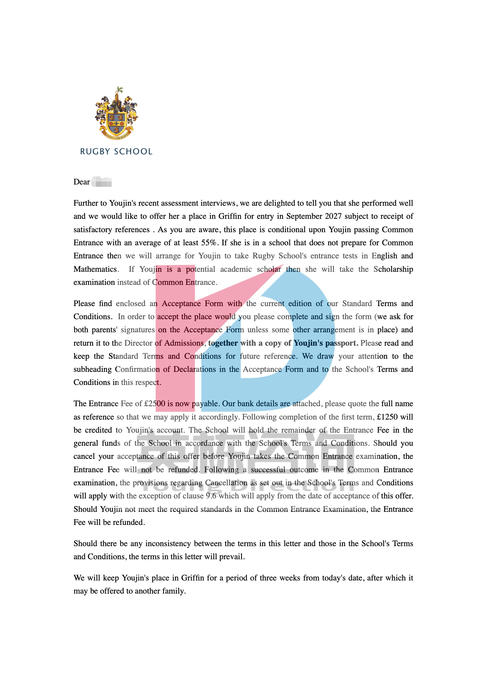 录取结果:Brighton College (布莱顿中学)、Rugby School (拉格比公学)