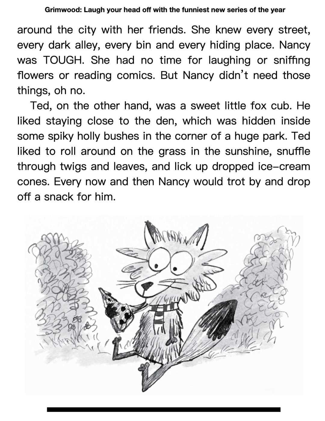 故事主人公是小狐狸Ted和它的姐姐Nancy,自从它们的父母离开后,姐姐Nancy就一直扮演着保护者的角色。当一只名为“巴顿公主”的猫在街头追着Ted不放时,Nancy知道是时候把Ted带出大城市了。他们决定逃往Grimwood,希望能在宁静的乡村找到避难所,建立真正的家。然而,它们却在途中遇到了偷窃的老鹰、夸张的鸭子、暴躁的兔子等一些不同寻常的角色,从而展开了一系列啼笑皆非的故事……
