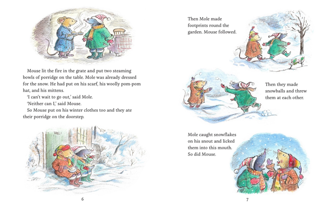《Mouse & Mole》系列丛书自1993年首次出版,于1996年被改编成了英国动画电视连续剧,还在2013年被改编成了一部长达28分钟的圣诞特辑,同年12月在BBC放映。本书语言浅显易懂,情节搞怪幽默,成功塑造了Mouse和Mole之间的深厚友谊,充满了欢笑与温馨,堪称是一部完美的故事著作,非常适合在冬日睡前讲述。