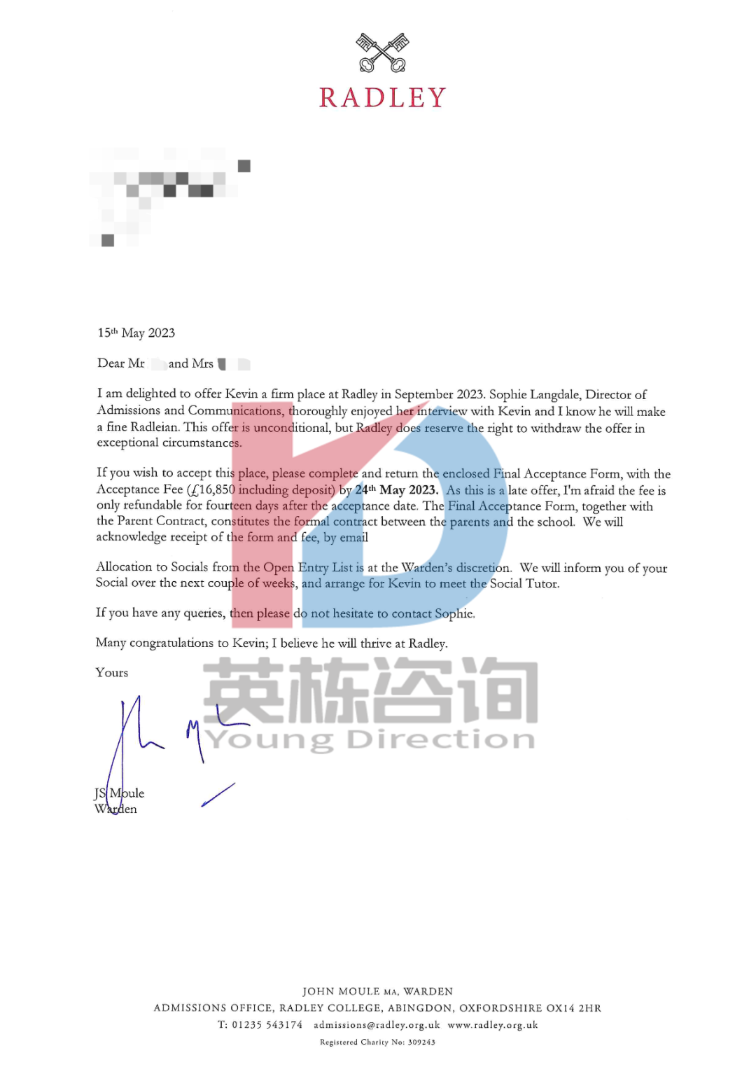 恭喜英栋学子Eason Y和Kevin分别摘得拉德利公学(Radley College)13+入学offer一枚。